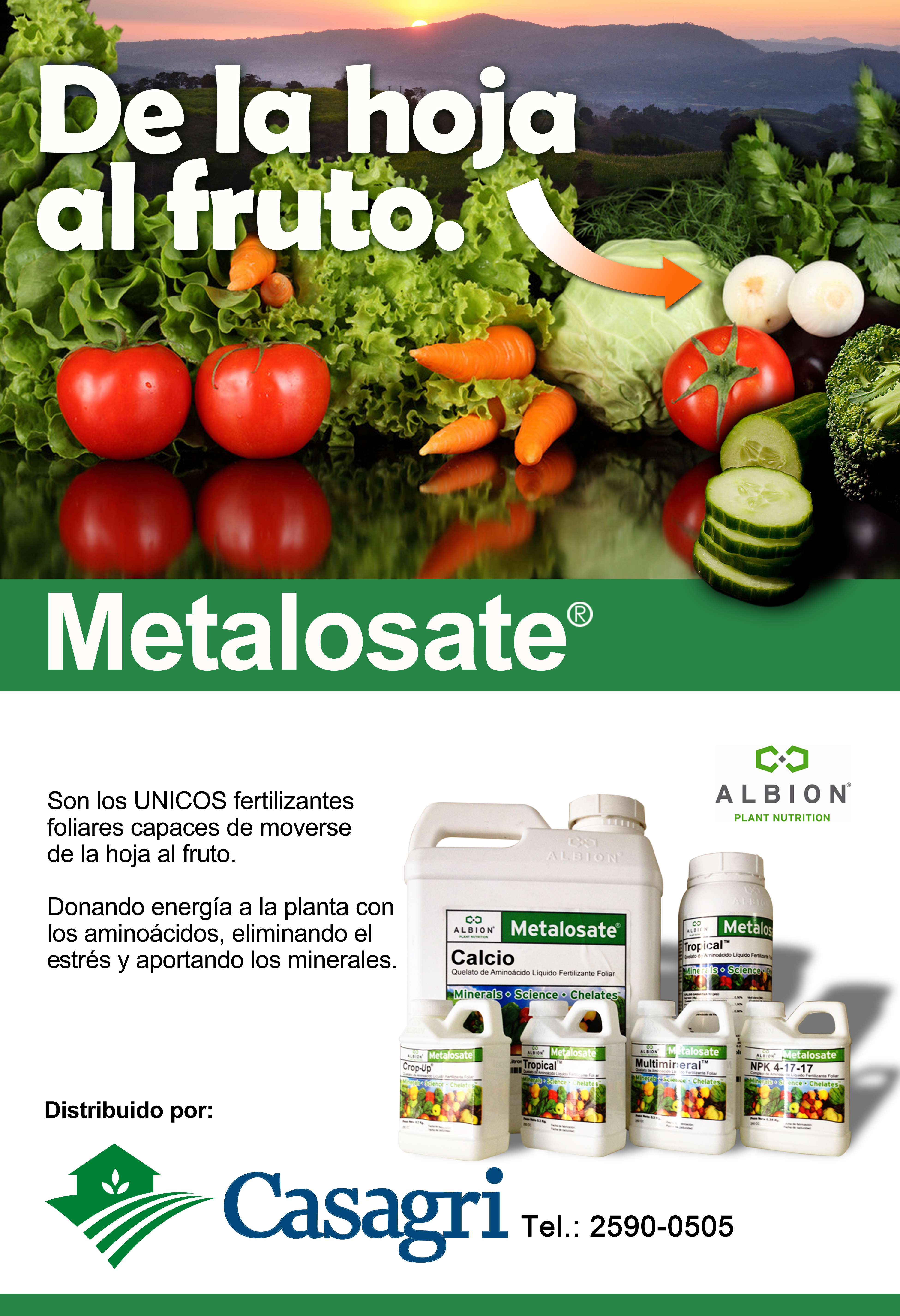 Afiche con el lema «de la hoja al fruto» para el cultivo de hortalizas. Elaborado inicialmente para Costa Rica.